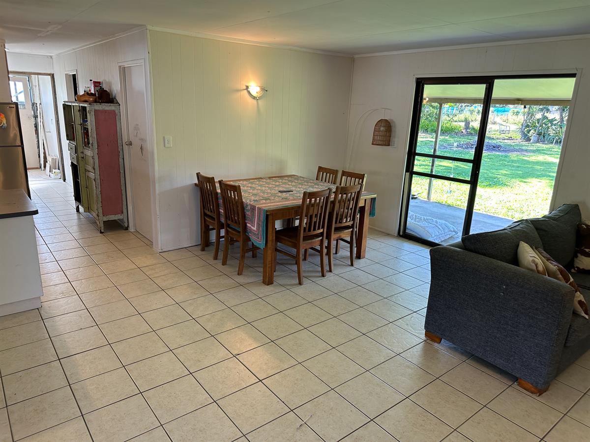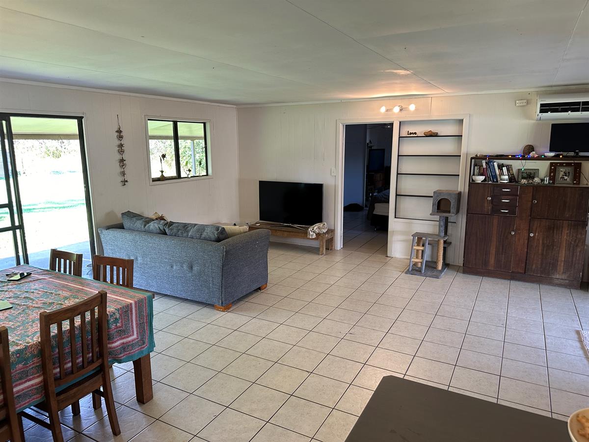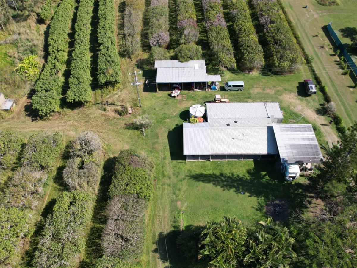 This ex Mango & Lychee orchard is set on 3.79 ha ( approx 9.3 acres). It has a 3brm, 1 bathroom (which requires to be completed) house with front and rear patios. There is also 2 X 4 bay sheds, horse stable, enclosed storage area plus an extra high double carport. High enough to park a bus.