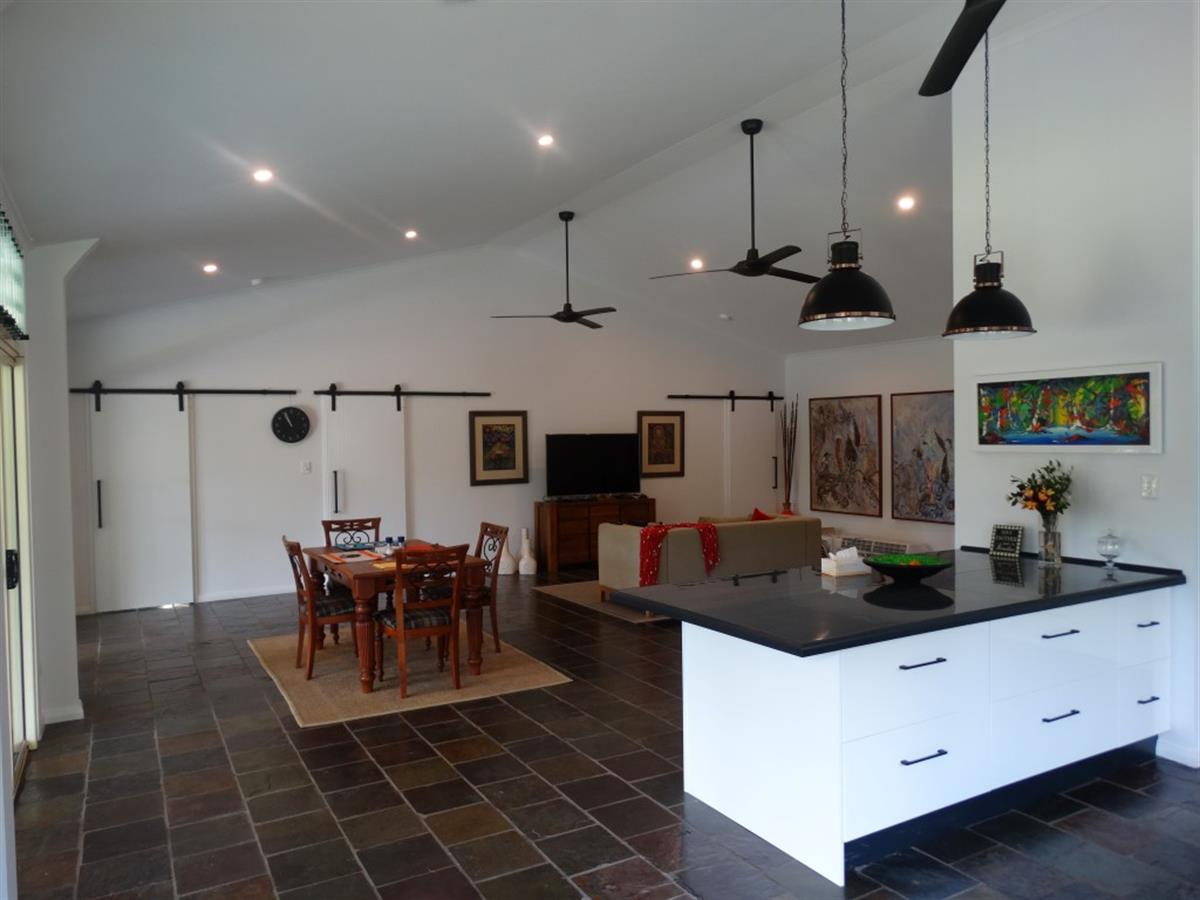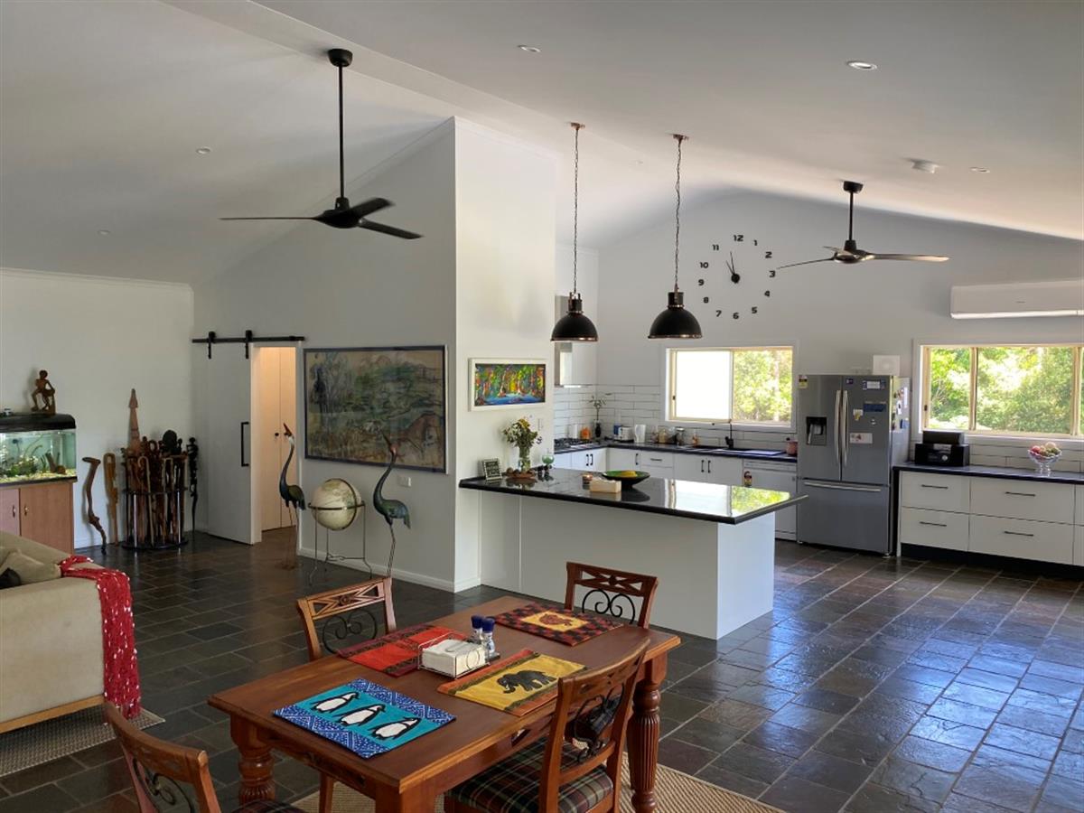 The lounge, dining and kitchen are open plan design and open onto the front patio which overlooks the property.